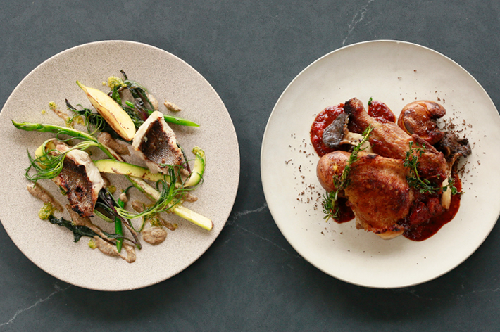 または、低温調理したホロホロ鳥のバーミキュラ フライパンソテー 自家製ドライトマトのソース