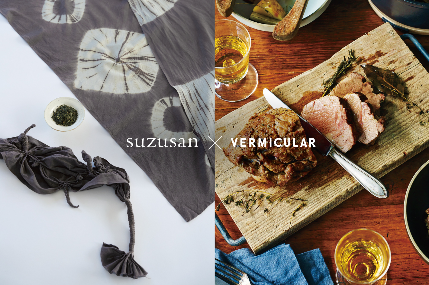 有松鳴海絞りをルーツに、伝統と現代性を融合させたものづくりを世界各国で展開するブランド「suzusan」。今回は、そのsuzusanが運営する「Studio Suzusan」のスタッフを講師に迎え、有松鳴海絞りのワークショップとバーミキュラ料理を楽しむ特別イベントを開催します。名古屋の伝統工芸として江戸時代から親しまれてきた有松鳴海絞りの歴史・背景・技術を学んだあと、代表的な技法「手筋絞り」「手蜘蛛絞り」を用いて手ぬぐいをデザイン、実際に絞る工程を体験していただきます。染色にはお茶を用いた天然染料を使用。自然素材が生み出す穏やかな風合いと、偶然に生まれる模様の表情をお楽しみください。染色の間は、普段は一般公開していないバーミキュラ ビレッジ3階にて、バーミキュラ専属シェフが本イベントのために考案したオリジナルメニューをご提供。お料理を楽しみながら、染色の工程を間近でご覧いただけます。※制作した手ぬぐいは当日お持ち帰りいただけます。