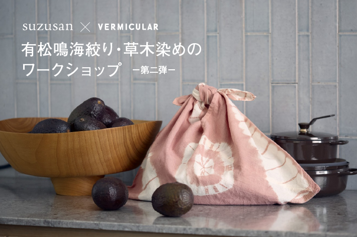 有松鳴海絞りをルーツに、伝統と現代性を融合したものづくりを世界に発信する「suzusan」。今回は、そのsuzusanが運営する「SUZUSAN Lab」のスタッフを講師に迎え、有松鳴海絞りのワークショップとバーミキュラ料理を楽しむ特別イベントを開催します。