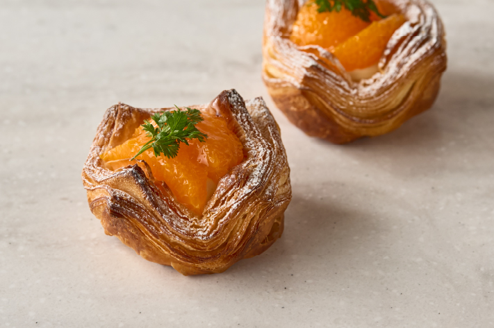 バーミキュラのミニスキレットで焼き上げたデニッシュはバター香る上品な味わい。ほどよい甘みのクリームと、季節のフルーツ「せとか」をのせた、春の訪れを感じられる一品です。デニッシュのパリッサクッ食感と、せとかのジューシーな口当たりをお楽しみください。