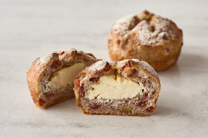 じっくりローストしたくるみとクランベリーを練り込んだ生地で、はちみつとクリームチーズをたっぷり包み、ミニスキレットで焼き上げました。クランベリーのほどよい甘みと、クルミの香ばしさ、まろやかなクリームチーズが重なり合う贅沢な味わいです。