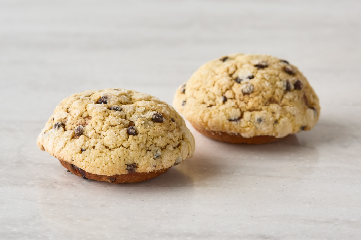 ココア生地のブリオッシュ生地にチョコチップを練り込み、ミニスキレットで焼き上げました。生地のふんわり食感と、表面のクッキー生地のざくざく食感のコントラストをお楽しみください。